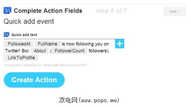 另一个示例将在您的时间表中得到通知,其中包含一个事件,该事件指示何时有人在Twitter上关注您。