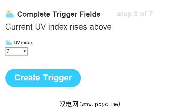 在IFTTT天气中另一个与天气相关的非常有用的触发因素是紫外线指数。
