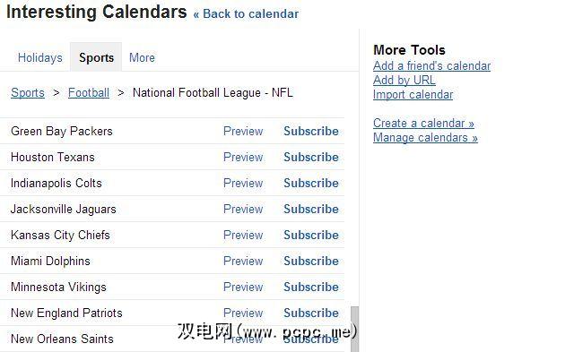 如果您是体育迷,请订阅多个时间表并使用各种游戏时间表加载您的日历!