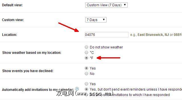 在外出搜索整个网络上的酷日历之前,最简单的导入天气信息的方法就是在日历设置中。
