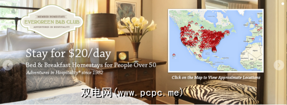 此款待网络针对的是老年人群体。 Evergreen Club为50岁以上的人提供床和早餐的寄宿家庭。住宿费用始终每晚不到25美元,您将获得“脚踏实地的,非商业性的私人住房,其中有关心您的人"。