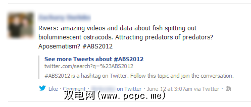 如您所见,更新现在包括从Facebook到Twitter的实际链接,您可以在其中学习有关所使用的#标签,提及的人员等的更多信息。这对Twitter用户和非Twitter用户都非常有用。如果您是Twitter用户,这只是您进入Twitter的快捷方式。如果您不是Twitter用户,那么这是一种通过您实际感兴趣的事物来熟悉此社交网络的好方法。