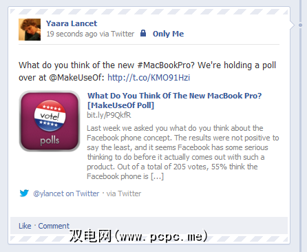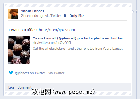 有些人选择将其Twitter更新发送到Facebook。如果您希望两个社交社区都获得相同的信息,则可以节省大量时间。直到最近,这些都是您可以从Facebook上的Twitter更新中获得的所有信息: