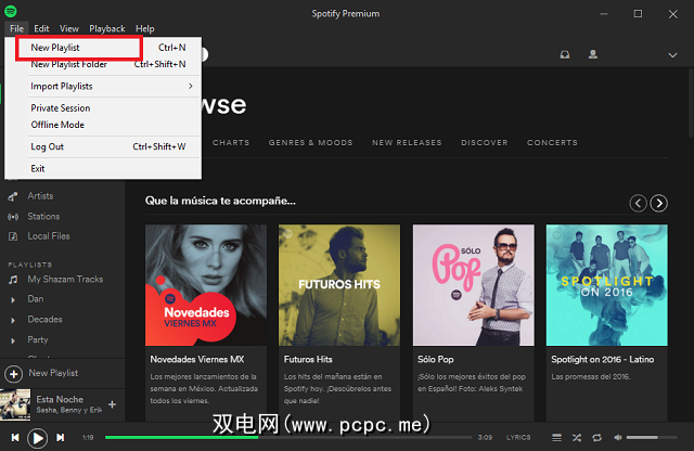 第一步是创建一个新的播放列表。您可以通过导航到文件>新播放列表来实现。给列表命名,然后单击以将其打开。添加几首歌曲,您就可以分享了。
