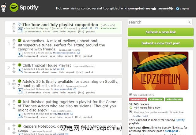 Spotify subreddit拥有近40,000个订阅者,无疑是最好的。这是一个充满活力且活跃的社区;每天都会发布各种口味和流派的新播放列表。