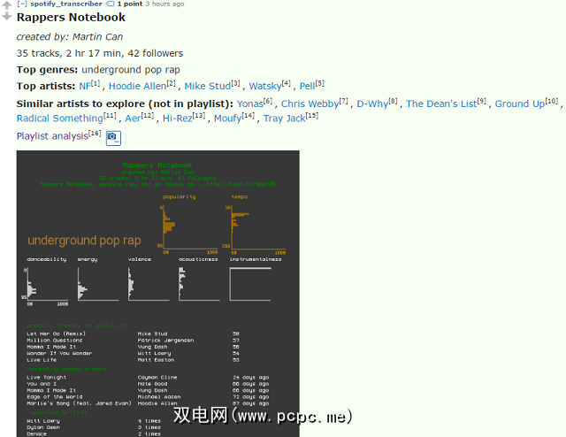 该模块还部署了一个非常酷的机器人,该机器人将自动分析所有发布的播放列表,并为您提供包含内容以及内容的摘要否则,如果您喜欢此列表,则应该听。这是发现新音乐的快速简便的方法。