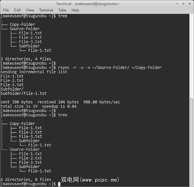 所有rsync命令在本质上都是相同的,因此应该足够容易拿起。这是最基本的命令,它仅将一个文件夹的内容复制到另一个文件夹: