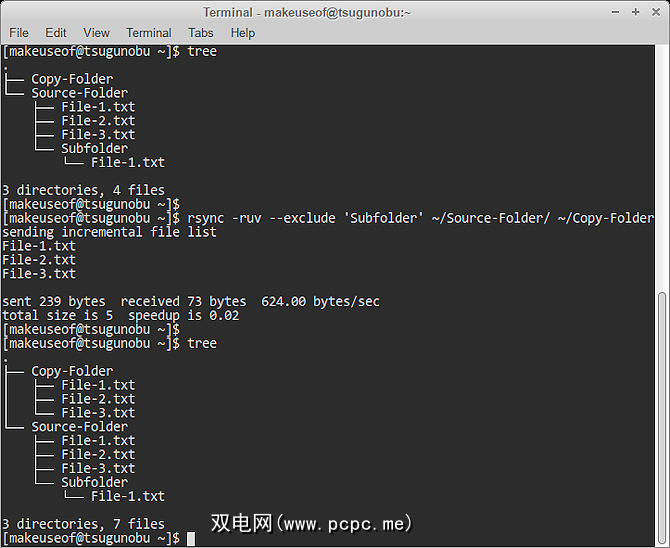 有时,您不想备份整个文件。文件夹中的数据,而rsync也可以处理。除了只选择要复制的更特定的文件夹外,您还可以使用 –排除选项跳过它们。这使您可以告诉rsync忽略选定的文件夹,文件或模式。