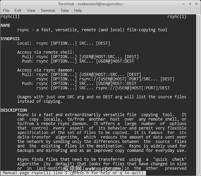 希望,本文为您提供了从命令行快速高效地备份数据所需的专业知识。但是,rsync是一种非常通用的工具,因此,如果您发现备份需求超出了本指南的范围,请不要害怕输入以下命令: