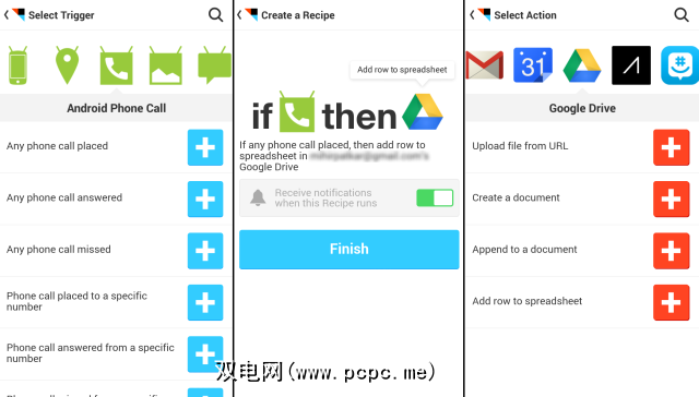 备份电话日志的过程非常简单。启动IFTTT for Android应用并创建新配方。要备份您所有的电话日志,我们将创建三种不同的配方-一种用于未接来电,另一种用于已接电话,第三种用于您拨打的电话。