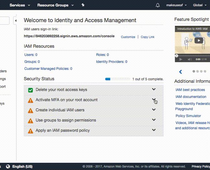 AWS的免费层允许您试用其所有服务,以一整年。在免费层中,S3为您提供5 GB的存储,20,000个获取和2,000个放置。这应该有足够的呼吸空间来试用AWS并确定其是否符合您的要求。注册AWS可以指导您完成几个步骤。您将需要有效的信用卡或借记卡以及一部电话进行验证。启动管理控制台后,将欢迎您进入AWS仪表板。