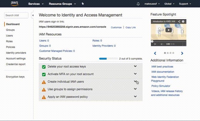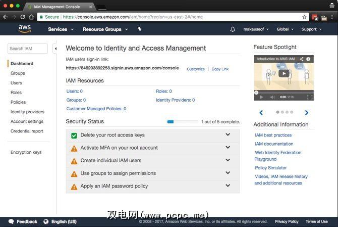 在继续之前,第一件事就是保护您的帐户安全。点击服务>安全性,身份和合规性> IAM 。在此过程中,我们还将向您的计算机授予必要的权限,以便您可以安全地备份和还原。