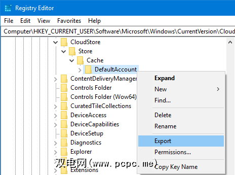 在左侧窗格中,右键单击 DefaultAccount strong>文件夹,然后点击导出。导航至要保存的位置,为 .reg 文件命名,然后单击保存。关闭注册表编辑器。