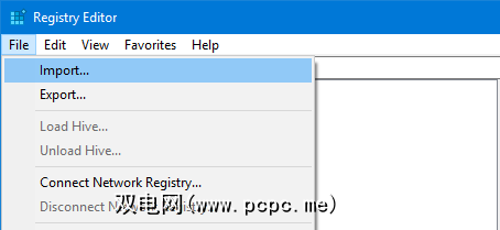 要还原,请打开注册表编辑器,然后转到文件>导入... 导航至备份所在的位置,然后双击以倒退时间。