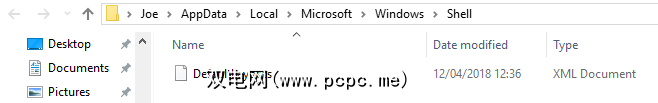 在此文件夹中,有一个名为 DefaultLayouts.xml 的文件。将此文件复制并粘贴到保存 .reg 文件的位置。
