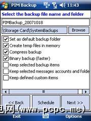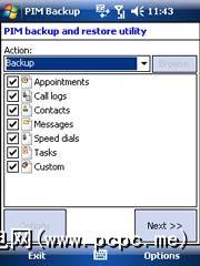 PPCPIMBackup支持文件压缩,调度,并且最重要的是,它可以安装OTA(空中安装,对于您来说是菜鸟),这意味着您不必运行通过ActiveSync使其正常工作。实际上,该程序的占用空间很小,它刚用完HTC Zip的临时内存。该过程不到5分钟,并且一直顺利进行。尽管我很确定是否可以使用压缩来运行备份,但是这样做会比较慢,但是我有大量的约会和联系人信息,甚至没有压缩,但文件很小,只有218k。