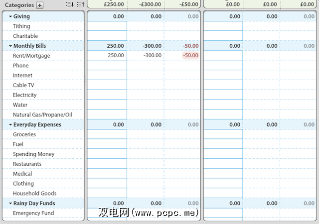 YNAB支持多个银行帐户,并允许您添加储蓄帐户,信贷额度,甚至Paypal。然后,您可以添加从底线中减去的付款。很简单。