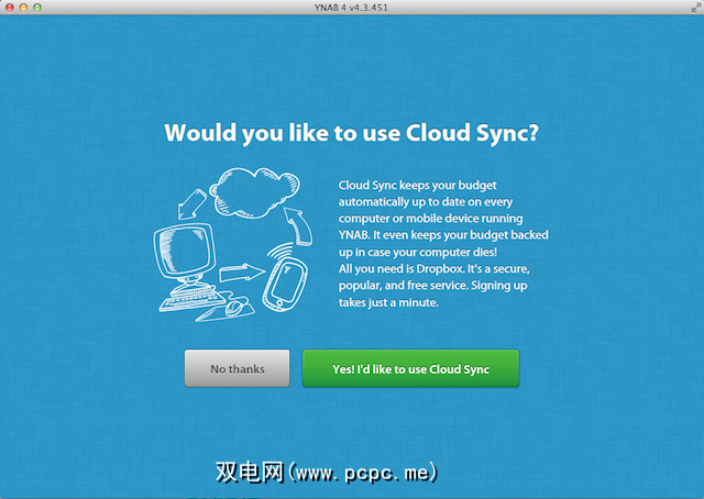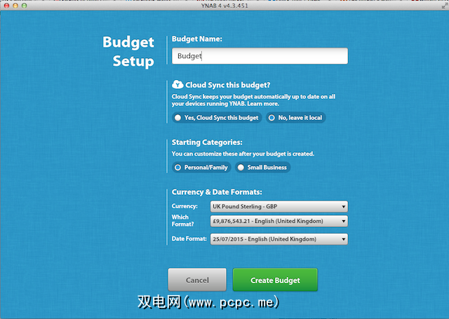 在安装YNAB时,系统会提示您创建预算。在这里,系统会询问您是否要将此预算与移动设备同步;如果您的预算是用于企业或个人帐户的,以及一些本地化设置。