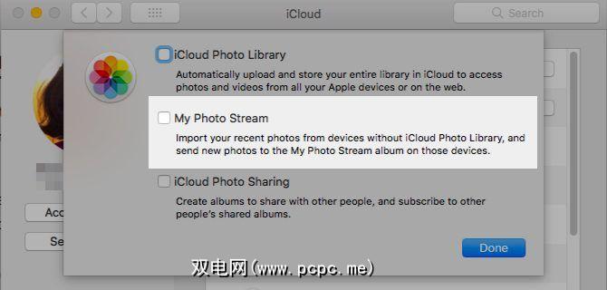 您可以从系统偏好设置> iCloud 启用“我的照片流"。点击照片旁边的选项按钮。然后,您将在显示的窗口中找到必要的选项。
