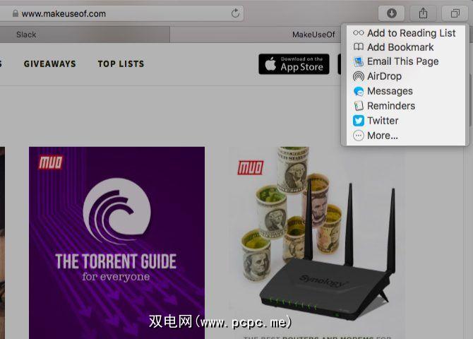 这是在任何Mac应用程序中单击共享工具栏按钮时看到的应用程序/功能列表。当然,其内容会根据您所使用的应用程序而有所不同。