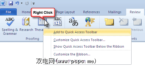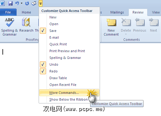 此快速访问工具栏对于MS Office下的所有应用程序都是通用的。第一步不会改变,但是显然添加新命令将取决于应用程序和用途。我们使用MS Word 2010来显示这些步骤。