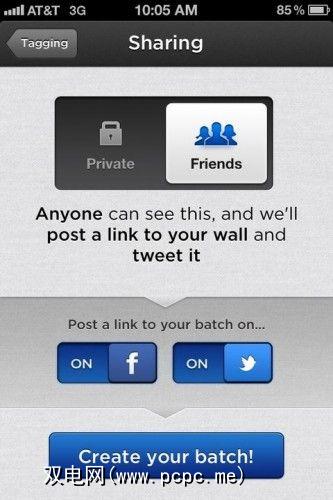 Batch是一个很酷的工具,通过各种社交网络与您的朋友共享大量图片。这对Twitter尤其方便,因为Twitter上没有相册可以共享Facebook之类的许多图片。它也有自己的社交网络,但我认为他们的面包和黄油正在使用该应用程序与其他网络共享。