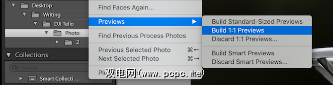 通过转到库>预览>构建1:1预览来构建预览。这可能需要一些时间,具体取决于计算机的性能和照片数量,但是性能的提高值得等待。