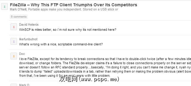 如果选择“扩展"选项,您还将看到每个供稿项的注释在底部的帖子中,从Reddit,Livejournal,Disqus,Facebook小部件和“带有评论供稿的博客"之类的来源中提取(我认为这意味着Blogger和WordPress)。