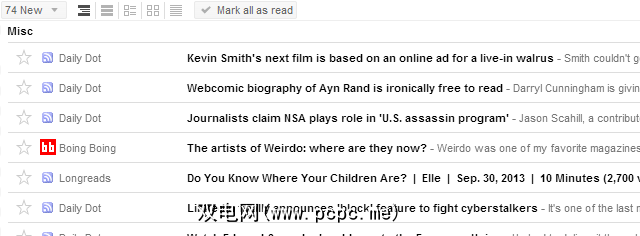 还有另外两个视图- Expanded(不带注释)和 Expanded 。 “扩展"是指看到所有供稿项目均已打开并且可供阅读,而无需先单击它们。