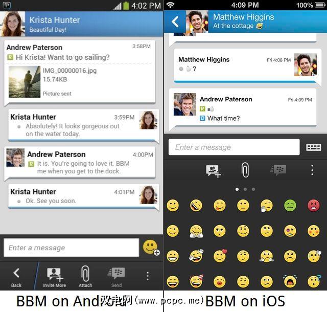 BBM具备聊天功能,文件共享(照片和语音备忘)以及群聊功能您最多可以邀请30个人。就像社交网络一样,您可以设置个人资料图片,个人消息,状态消息,并向所有联系人发送广播消息。目前,Android和iOS不支持BBM Video Calling和BBM Voice Calling,但计划将其集成在将来的更新中。
