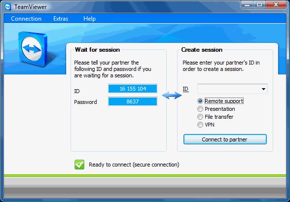 只要您的软件最终运行,他们所要做的就是要做的就是读两个数字,它们就完成了!在“创建会话"框中键入第一个,在出现提示时输入密码,然后在几秒钟内启动连接。您完全可以控制远程PC,大约一分钟后,即可开始操作。如TeamViewer.com所述,该连接是完全加密的“基于RSA私钥/公钥交换和RC4会话编码"。