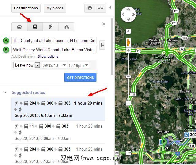 我去年去费城的商务旅行中最常使用的功能是Google Maps中的Transit功能。当我访问具有公共交通系统的城市时,我绝对喜欢此功能。要启用它,只需点击Google地图中的“获取路线",输入您将要使用公共交通往返的两个地址,并确保单击导航菜单中的“公共交通"选项。那看起来像一辆城市公交车。