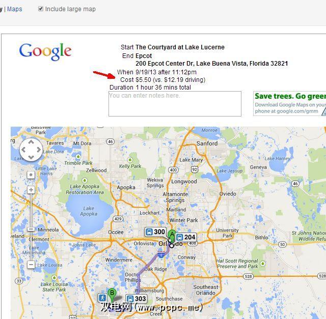 最重要的是,如果单击以打印公共交通导航详细信息,您甚至会获得详细的打印输出其中包括旅行所需的时间以及所有公共交通费用的总费用。