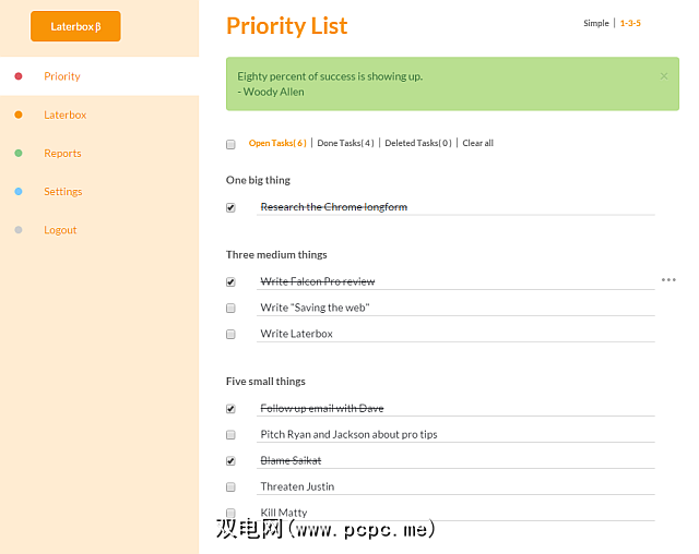 Laterbox非常新。测试版有一些类似之处。但是,随着Web应用程序的成熟,它会变得更好。告诉我们您对工具和1-3-5生产率系统的初衷。