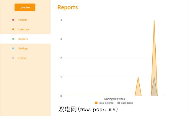 您随时可以查看过去30天的工作效率图表。这里没有复杂的数字或信息过载。 Laterbox有两行,橙色和灰色。橙色线是您当天在任务列表中输入的任务数,灰色线是您划掉的任务数。乍一看,您可以知道是要超载待办事项列表还是需要更改工作方式。就像我们说的那样,很简单。