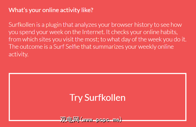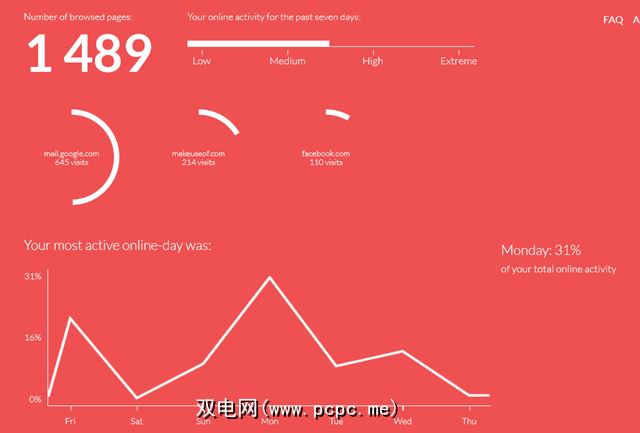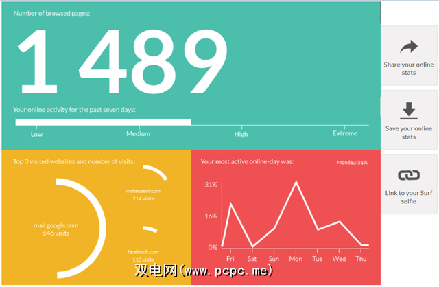 Surfkollen是适用于Firefox或Chrome的瑞典语附加程序。它会分析您活动的最后7天,并将结果显示在一个彩色的彩色图表上。不幸的是,Surfkollen仅能分析最近7天,因此您现在所能获得的见解有些有限。不过,如果您像我一样,那么一个星期就可以轻松地展现出您的典型冲浪习惯。