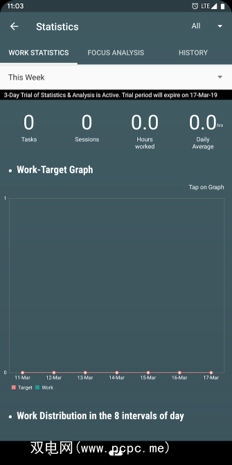 Engross遵循相同的Pomodoro风格,但是您可以根据自己的喜好个性化各个时段。左侧还有一个用于统计信息的综合屏幕,甚至可以向您显示您的聚焦能力分析。
