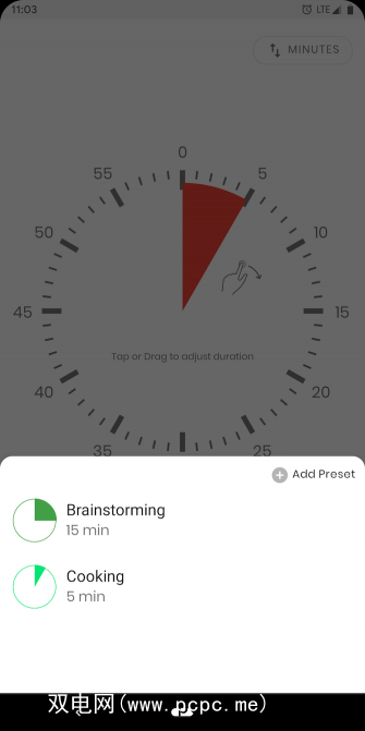 Visual Timer是具有简洁设计的简约应用程序,可让您快速启动计时器。它具有主页上的大型时钟界面,您可以与之交互以设置持续时间。松开手指后,Visual Timer会自动开始倒数计时。