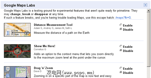 我喜欢Google允许用户选择通过他们的实验室计划进入Beta版功能。借助Google地图,您可以启用一些可能并非完全没有错误但仍然有用的额外功能。我个人不使用Labs的Maps功能,但是如果您认为它们会为您提供帮助,则没有理由不使用它们。