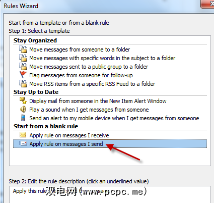 在“规则向导"的下一步中,您可以选择限制此限制的外发消息数。例如,它可能只是重要的消息,或者消息的正文中带有某些单词(也许正在检查您想使用的某些选择诅咒单词?)