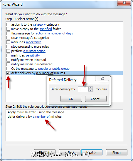 最后,选择“ 延迟发送几分钟" ",点击“ 一个数字"链接,然后将延迟时间设置为您认为需要花一些时间才能冷静下来并取消消息,然后再实际发送。