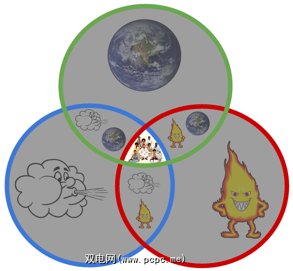 如您所见,对于Google搜索而言,整体不大于其各个部分的总和;它实际上更小。但是,由于存在冗余(即重叠的区域),如上面的维恩图所示,因此很有意义。