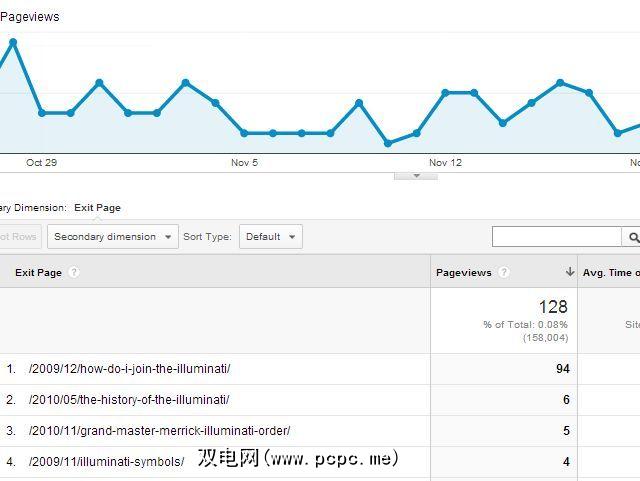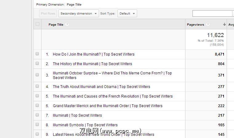 在上面的示例中,在我的网站上搜索标题中带有“ Illuminati"或“新世界秩序"的所有标题的流量数据。