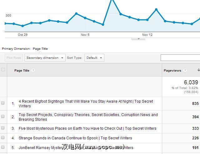 这将向您显示整个网站的总体趋势时间段,并且还会向您显示从该特定引荐来源获得最多点击量的标题。