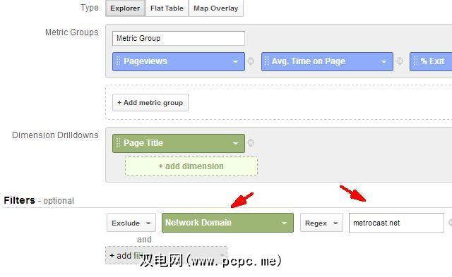 例如,由于我知道自己的ISP是metrocast.net,因此我可以过滤“排除"所有流量来自该网络域的访问量的流量报告中。