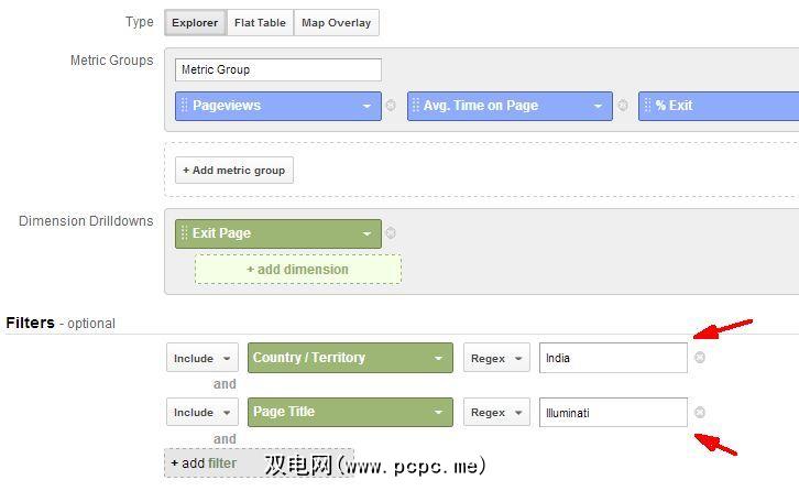 您可以使用许多过滤器组合来了解您的读者及其了解的内容喜欢在您的网站上阅读。例如,如果我想看看有多少印度读者对我的博客中有关光明会的文章感兴趣。这样的过滤器看起来像下面的过滤器。