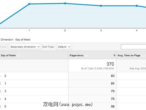 结果显示,我的“关于"页面上来自新访问者的大部分访问量显示周一至周四,而不是周五。