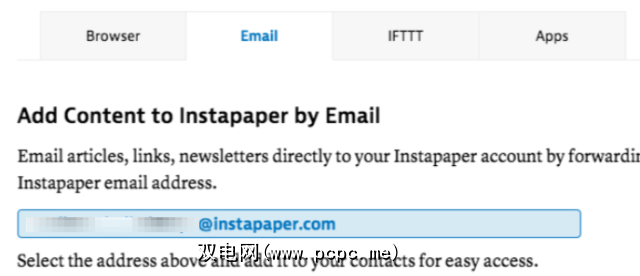 您可以通过转发这些邮件来解决这两个问题冗长的电子邮件到您的个人Instapaper电子邮件地址。可以通过您帐户内的此页面访问此电子邮件地址。
