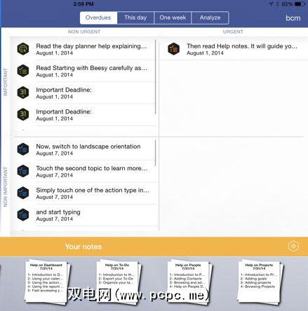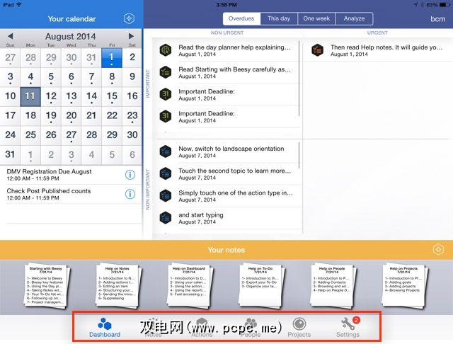 Beesy的在线版和iPad版都使用五个主要部分:仪表板,其中概述了任务和日历指定; 笔记部分,用于会议记录和会议记录;您创建的动作列表以及分配给其他人的任务;您联系人的 People 部分;