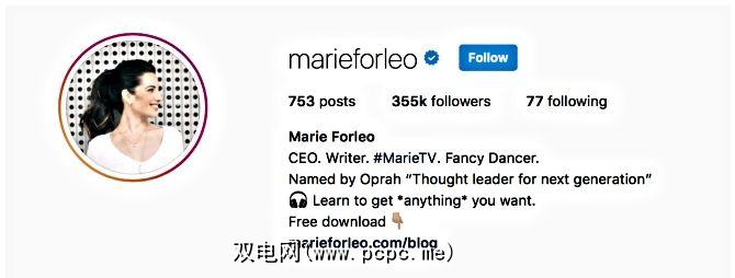 以Marie Forleo为例。她的履历表述了她的所作所为,甚至利用了奥普拉(Oprah)的社交证据。